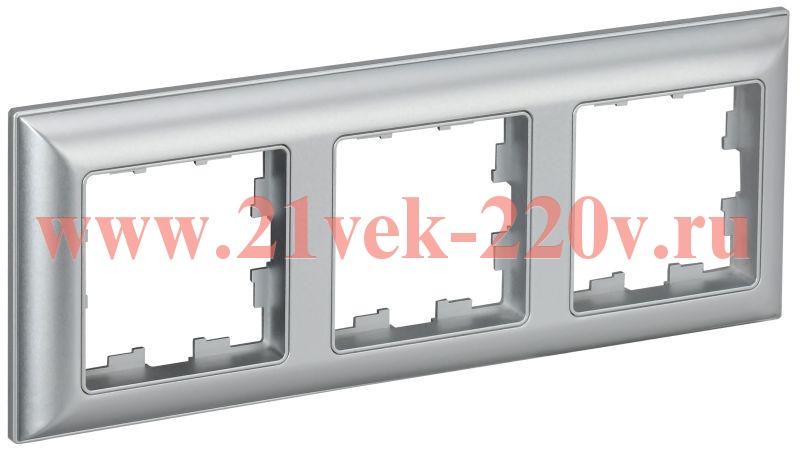 Трехпостовое, декоративное обрамление для электроустановочных механизмов скрытого монтажа IEK BRITE, цвет алюминий BR-M32-12-K47