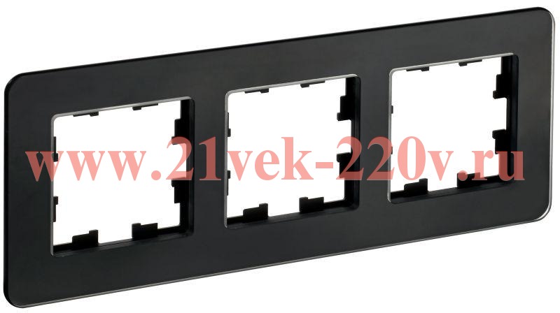 Трехпостовое, декоративное обрамление из стекла, для электроустановочных механизмов скрытого монтажа IEK BRITE, черного цвета BR-M32-G-41-K02