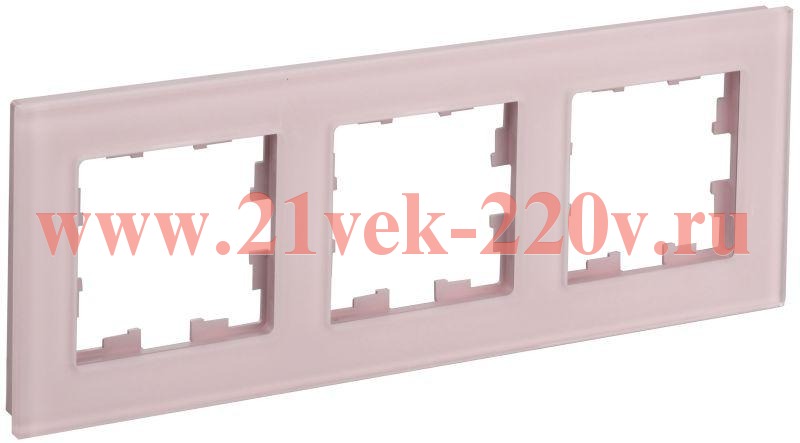 Трехпостовое, декоративное обрамление из стекла, для электроустановочных механизмов скрытого монтажа IEK BRITE, розового матового цвета BR-M32-G-31-K14