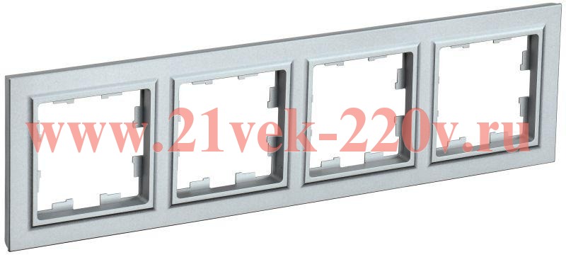 Пластиковое декоративное обрамление, на 4 электроустановочных механизма скрытого монтажа IEK BRITE, цвета алюминий BR-M42-K47