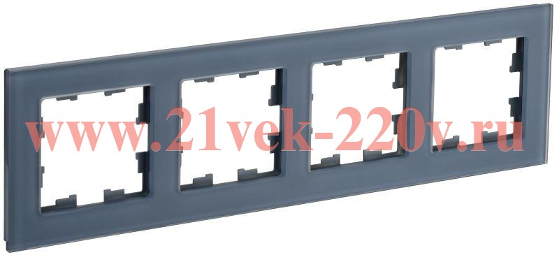 Четырехпостовое, декоративное обрамление из стекла, для электроустановочных механизмов скрытого монтажа IEK BRITE, маренго матовый цвет BR-M42-G-31-K35