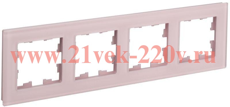 Четырехпостовое, декоративное обрамление из стекла, для электроустановочных механизмов скрытого монтажа IEK BRITE, розового матового цвета BR-M42-G-31-K14