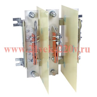 Разъединитель 3 полюсный на номинальный ток 1600 А, где установлена съёмная рукоятка, а механическая износостойкость составляет 6300 циклов.