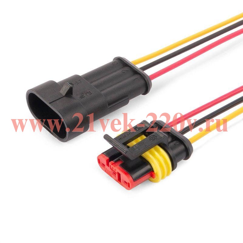 Разъем герметичный автомобильный РГА-3П с проводом КВТ
