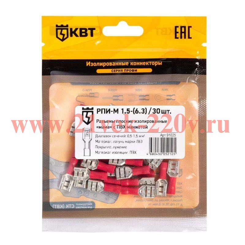 Разъем кабельный плоский изолированный мама РПИ-М 1.5-(6.3) (уп.30шт) КВТ