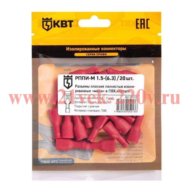 Разъем кабельный плоский изолированный мама РППИ-М 1.5-(6.3) (уп.20шт) КВТ