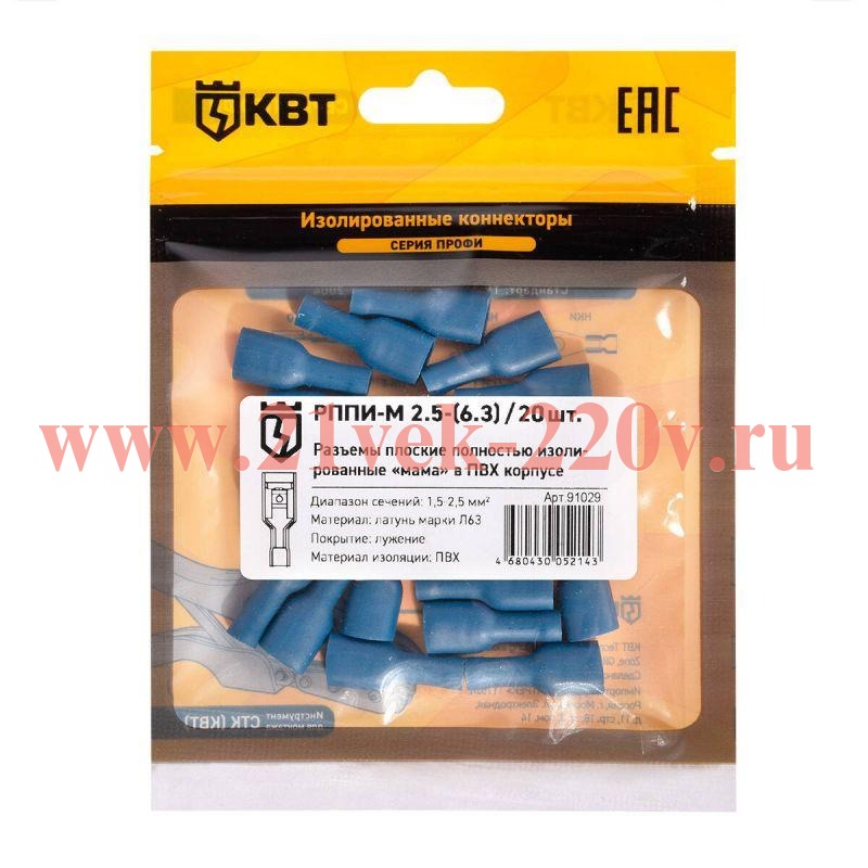 Разъем кабельный плоский изолированный мама РППИ-М 2.5-(6.3) (уп.20шт) КВТ
