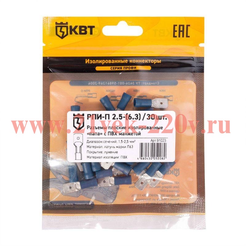 Разъем кабельный плоский изолированный папа РПИ-П 2.5-(6.3) (уп.30шт) КВТ
