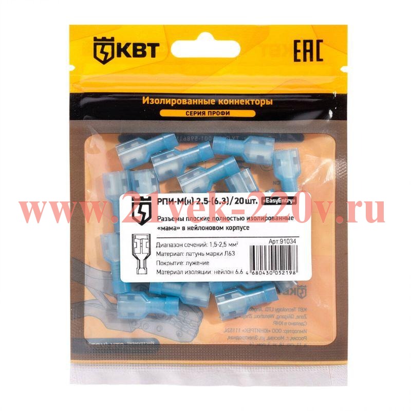 Разъем плоский изолированный мама РПИ-М(н) 2.5-(6.3) (уп.20шт) КВТ