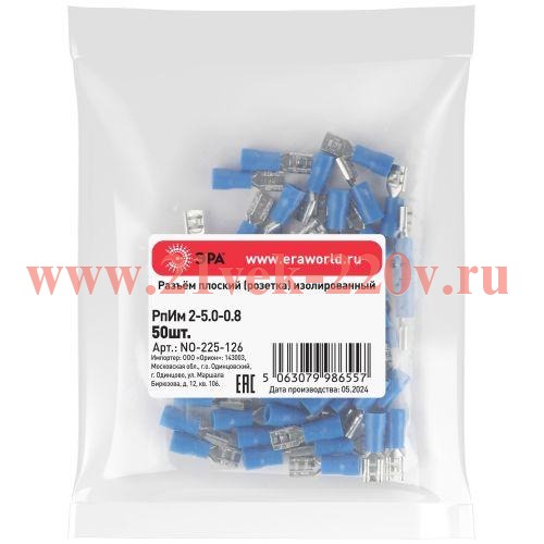 Разъем плоский ЭРА NO-225-126 РпИм 2-5.0-0.8 изолированный «розетка» упаковка 50 шт
