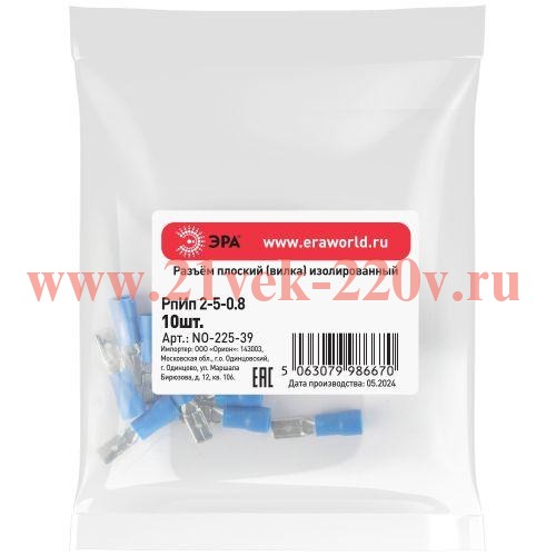 Разъем плоский ЭРА NO-225-39 РпИп 2-5-0.8 изолированный «вилка» упаковка 10 шт