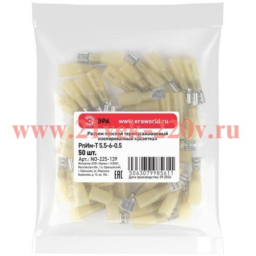 Разъем плоский ЭРА NO-225-139 термоусаживаемый РпИм-Т 5.5-6-0.5 изолированный «розетка» упаковка 50 шт