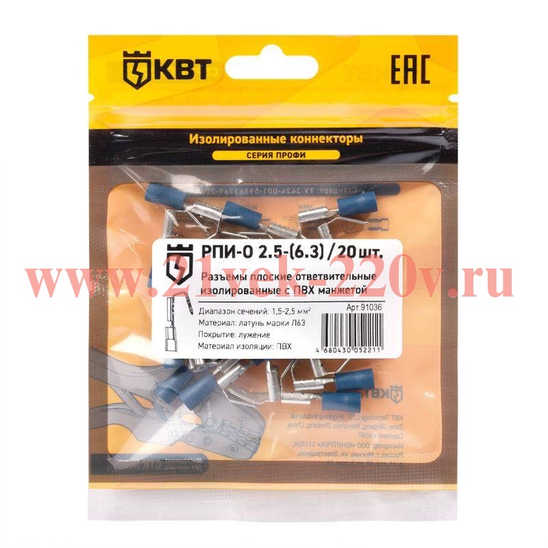 Разъем плоский ответвительный изолированный РПИ-О 2.5-(6.3) (уп.20шт) КВТ