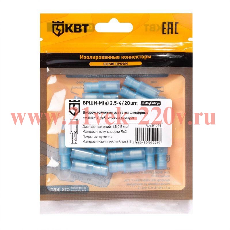 Разъем штекерный изолированный мама ВРШИ-М(н) 2.5-4 (уп.20шт) КВТ