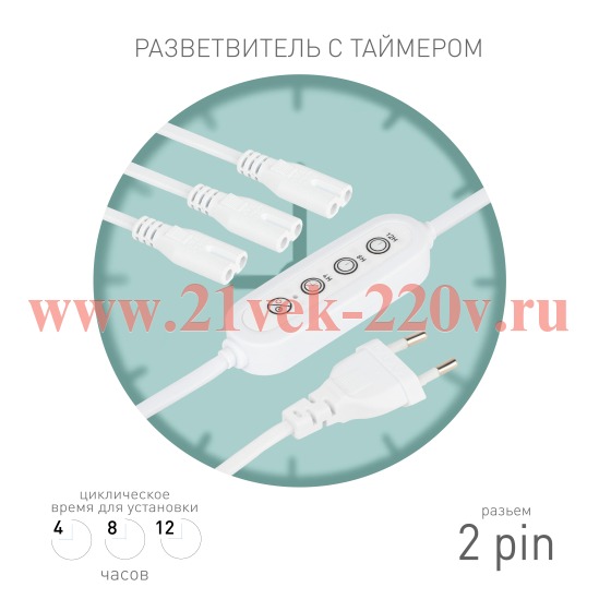 Разветвитель сетевой для линейных светильников 3х IEC C7 2pin 2m+timer на 3 точки с таймером 4; 8; 12Н 2м