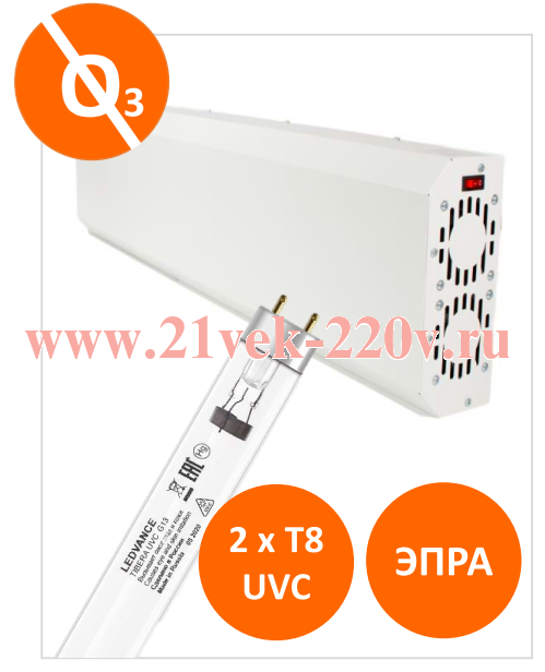 Рециркулятор бактерицидный ECO RECIRC UVC 2*15W WT F ЭПРА (в комплекте 2 лампы TIBERA) L600x250x11mm