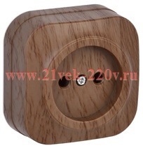 Розетка электрическая одинарная двухполюсная, накладного монтажа Глори ИЭК цвета дуб ERH10-K24-10