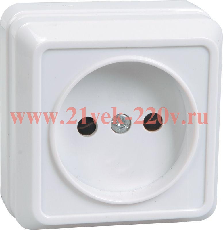 Розетка электрическая одинарная, без заземляющих контактов, накладного монтажа Октава ИЭК белого цвета