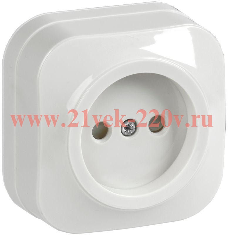 Розетка одинарная без заземляющего контакта, с защитными шторками, накладного монтажа Глори ИЭК белого цвета ERH13-K01-10