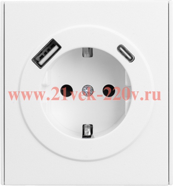 Розетка 1-ая с/з с/у з/ш 16А с USB A+C быстрой зарядки 5В/3А MIELE жемчуг Kranz KR-78-0704-4