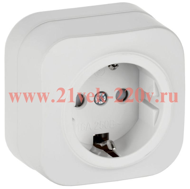 Электрическая розетка одинарная с заземляющими контактами и шторками, накладного монтажа Глори ИЭК матового белого цвета ERH14-K01M-16
