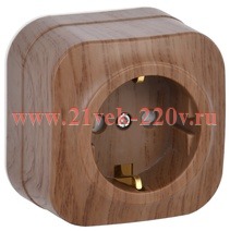 Розетка электрическая одинарная с заземляющими контактами и защитными шторками, накладного монтажа Глори ИЭК цвета дуб ERH14-K24-16