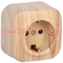 Розетка одинарная с заземляющими контактами, накладного монтажа Глори ИЭК цвет сосна ERH11-K34-16