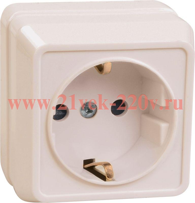 Розетка электрическая одинарная, с заземляющими контактами, накладного монтажа Октава ИЭК кремового цвета