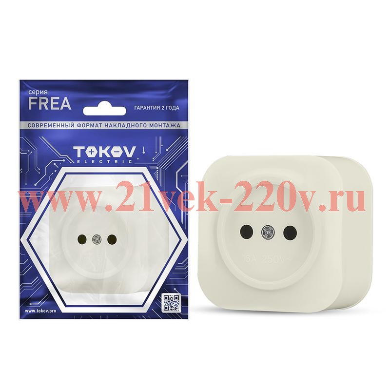 Розетка 1-м ОП Frea 16А IP20 250В без заземл. АБС-пластик беж. TOKOV ELECTRIC TKE-FR-R1-C02