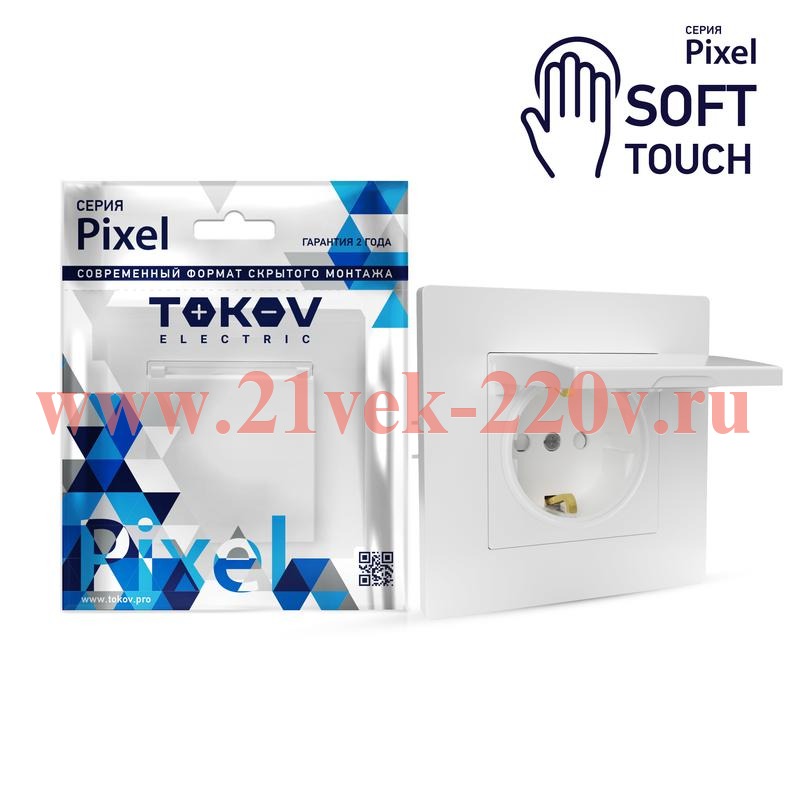 Розетка 1-м СП Pixel 16А IP20 с заземл. защ. шторки с крышкой механизм айс TOKOV ELECTRIC TKE-PX-R1Z