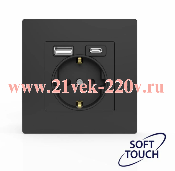 Розетка 1-м СП Pixel с заземл. с 2-мя заряд. устр. USB тип A+C IP20 механизм карбон TOKOV ELECTRIC