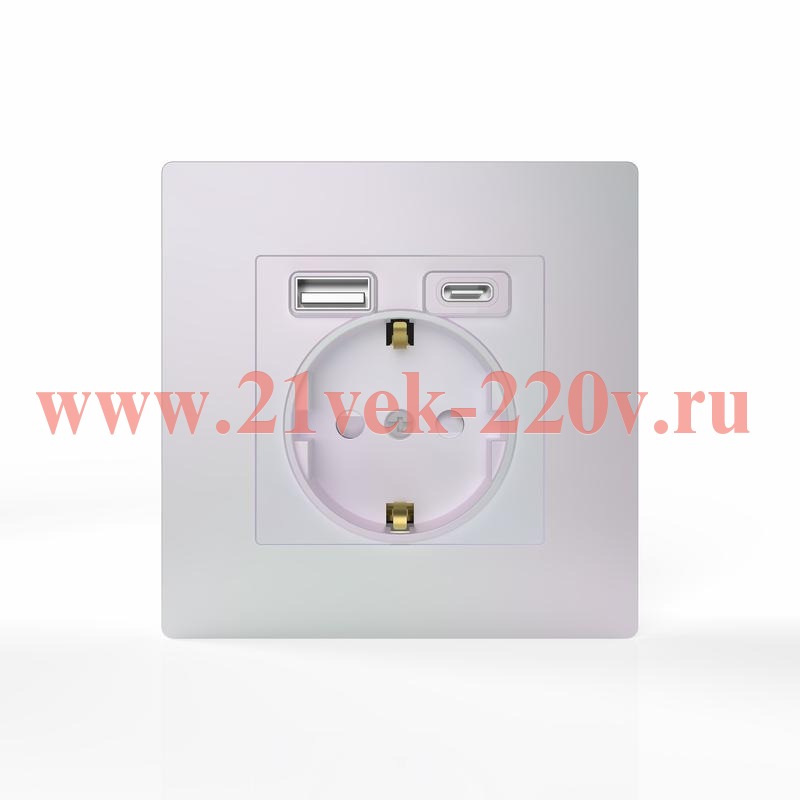 Розетка 1-м СП Pixel с заземл. с 2-мя заряд. устр. USB тип A+C IP20 механизм перламутр. TOKOV ELECTRIC