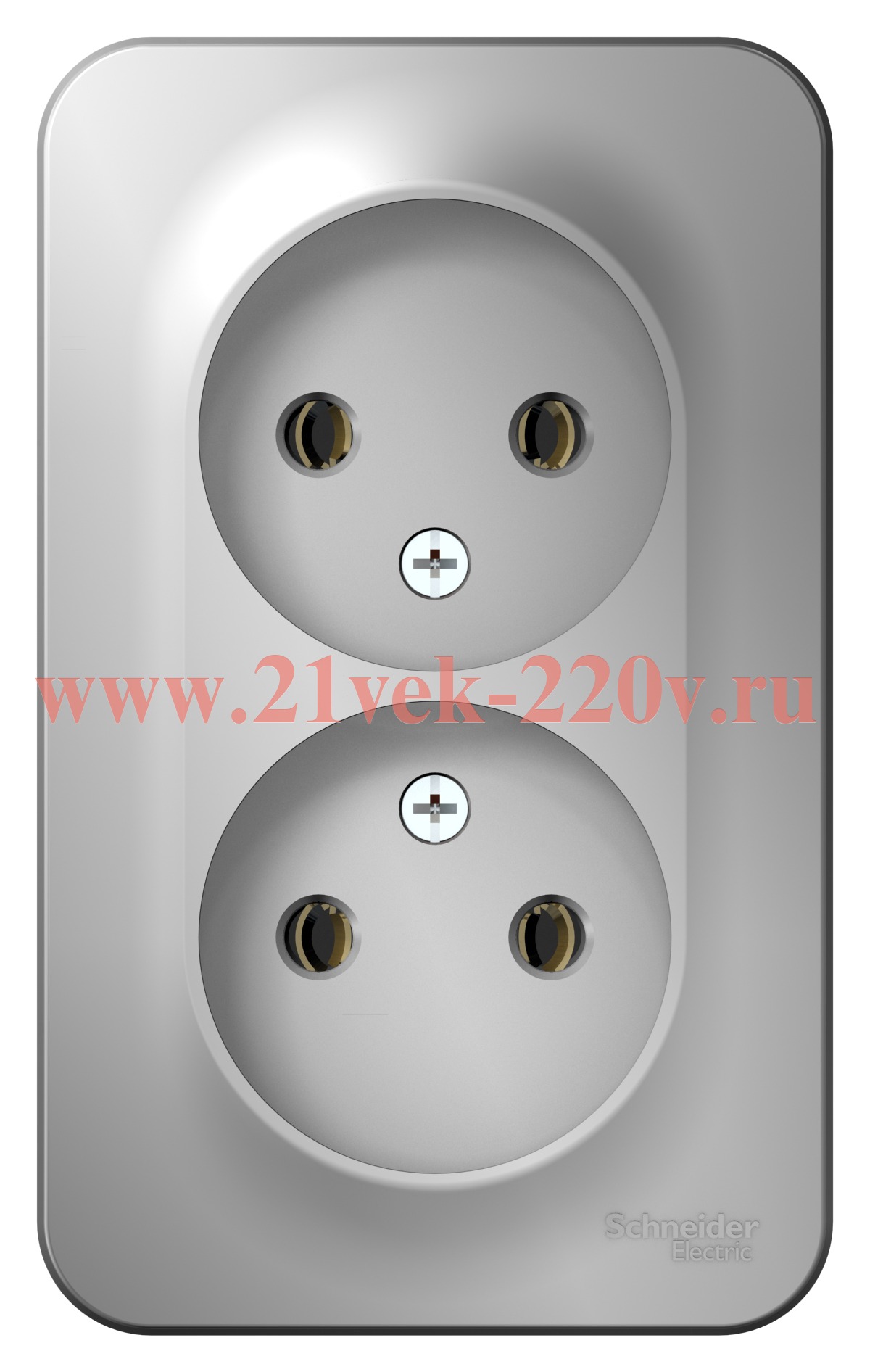 Двойная розетка О/У без заземления, без шторок, с изолирующей пластиной, 16А, 250В, алюминий Schneider Electric Blanca