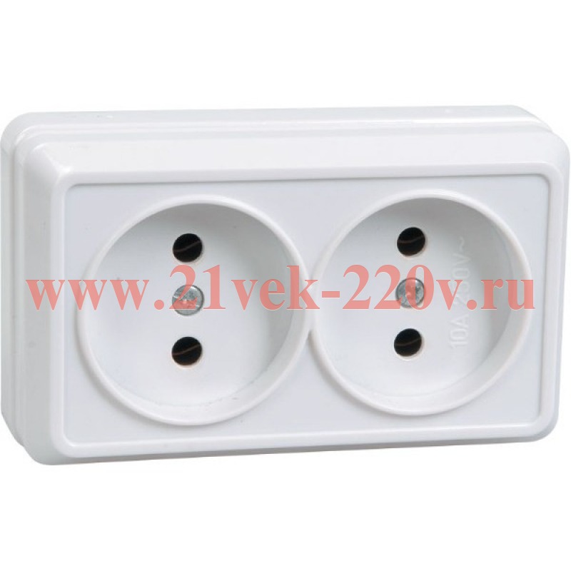 Розетка электрическая двойная, без заземляющих контактов, с защитными шторками накладного монтажа Октава ИЭК белого цвета