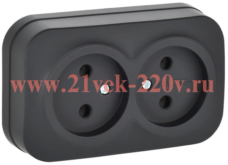 Электрическая двухполюсная розетка двойная накладного монтажа Глори ИЭК матового черного цвета ERH20-K02M-10