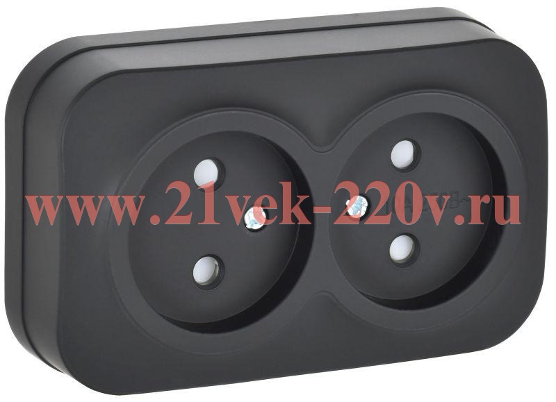 Электрическая двухполюсная розетка двойная с защитными шторками накладного монтажа Глори ИЭК матового черного цвета ERH23-K02M-10