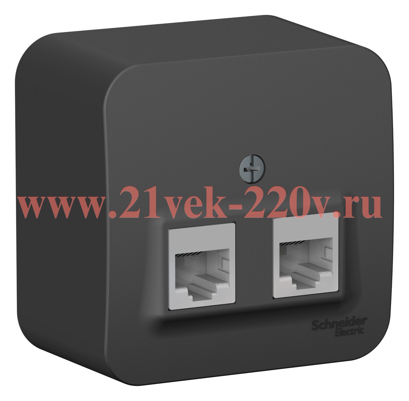 Двойная компьютерная розетка RJ45 cat.5e О/У с изолирующей пластиной, антрацит Schneider Electric Blanca