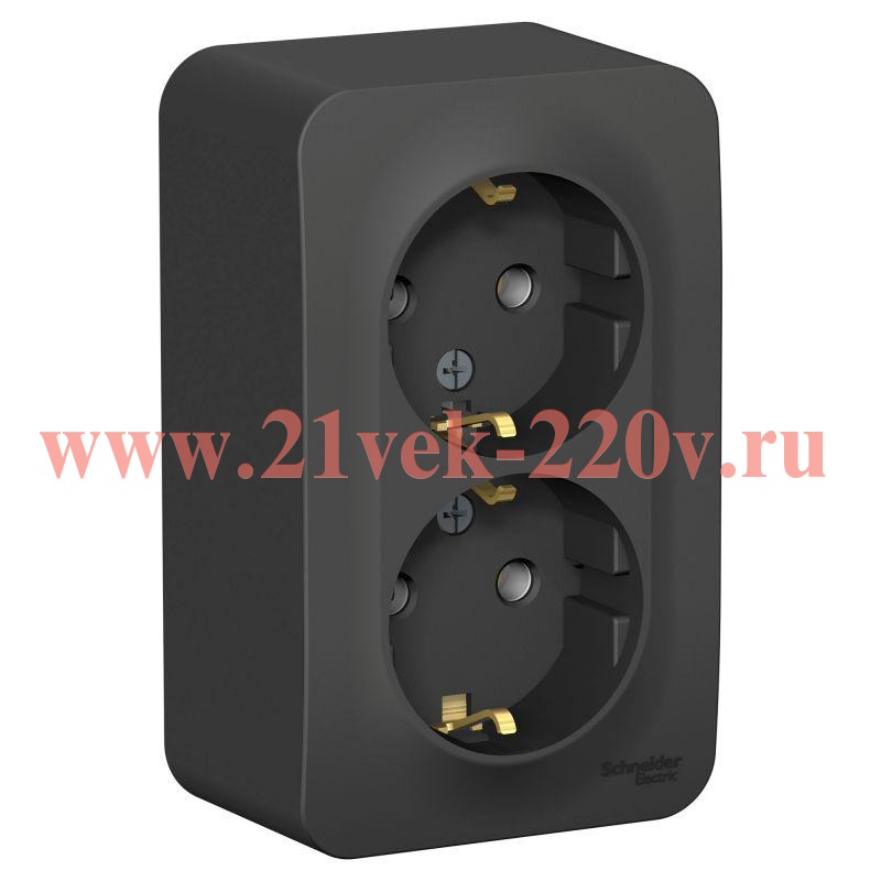 Двойная розетка О/У без заземления, со шторками, с изолирующей пластиной, 16А, 250В, антрацит Schneider Electric Blanca
