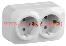 Розетка двойная с заземляющими контактами и защитными шторками, накладного монтажа Глори ИЭК белого цвета ERH24-K01-16
