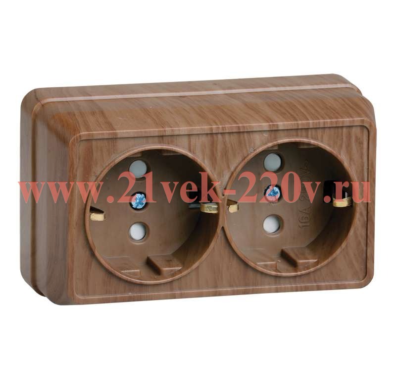 Розетка электрическая двойная, с заземляющими контактами, с защитными шторками, накладного монтажа Октава ИЭК цвет дуб