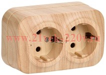 Розетка двойная с заземляющими контактами, накладного монтажа Глори ИЭК цвет сосна ERH21-K34-16