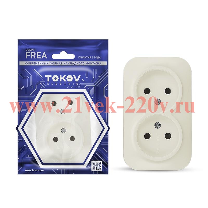 Розетка 2-м ОП Frea 16А IP20 250В без заземл. АБС-пластик беж. TOKOV ELECTRIC TKE-FR-R2-C02