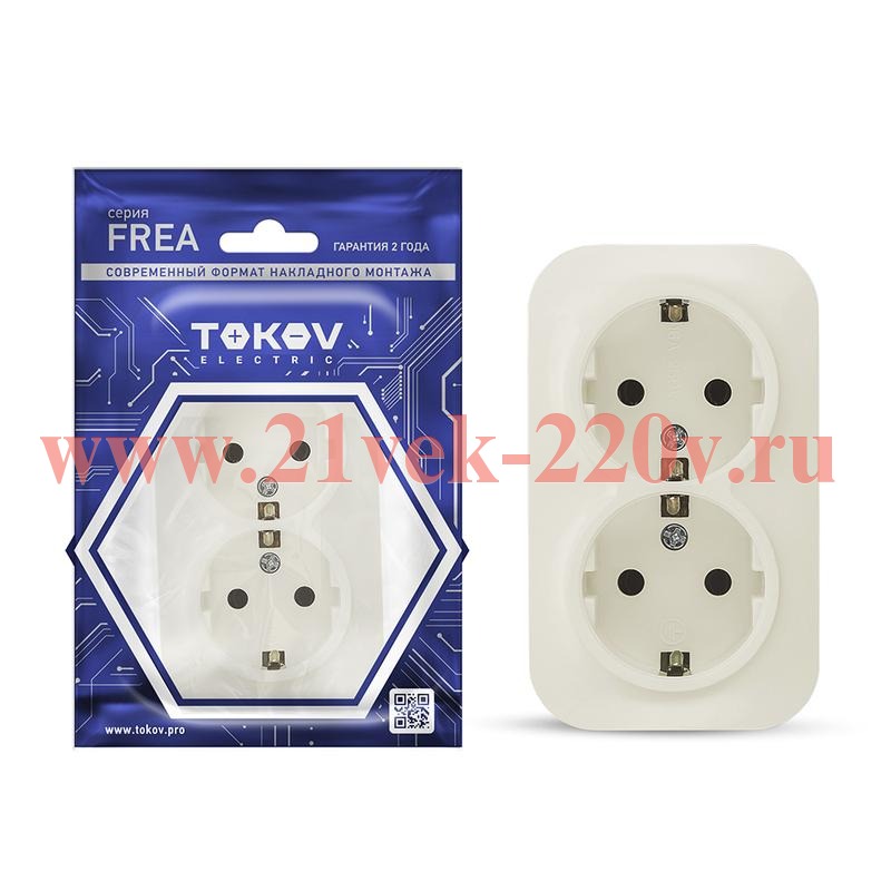 Розетка 2-м ОП Frea 16А IP20 250В с заземл. АБС-пластик беж. TOKOV ELECTRIC TKE-FR-R2Z-C02