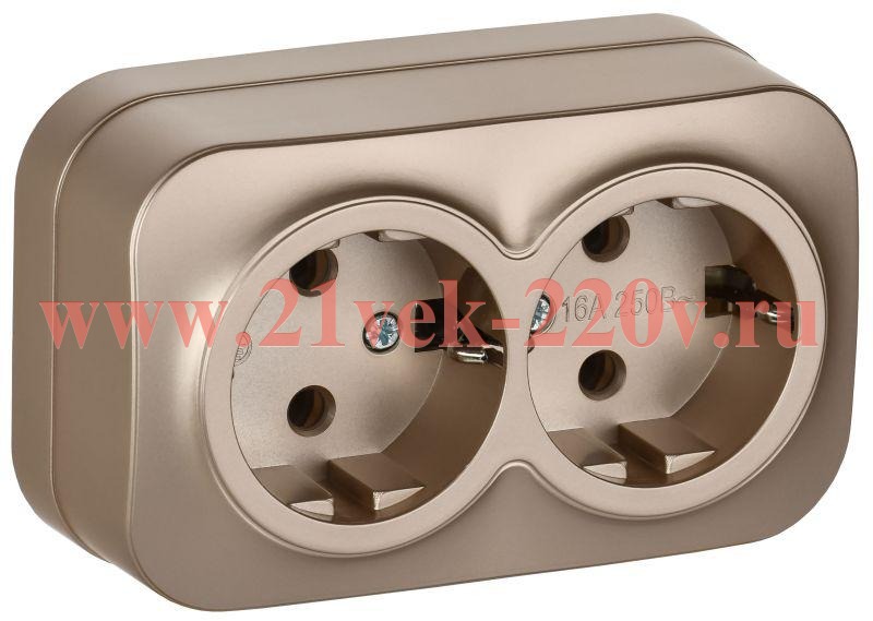 Розетка 2-м ОП GLORY РС22-3-ХШм 16А с заземл. без защ. шторок шампань матов. IEK ERH21-K37M-16