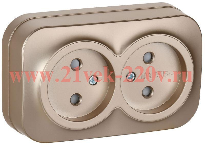 Розетка 2-м ОП GLORY РСш22-2-ХШм 10А без заземл. защ. шторки шампань матов. IEK ERH23-K37M-10