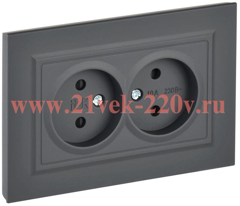 Розетка 2-м СП BRITE РСш12-2-БрГ 10А в сборе без заземл. защ. шторки графит IEK BR-R23-10-K53-F