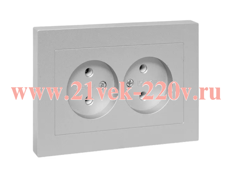 Розетка 2-м СП Эпика 16А без заземл. без защ. шторок с рамкой механизм алюм. EKF