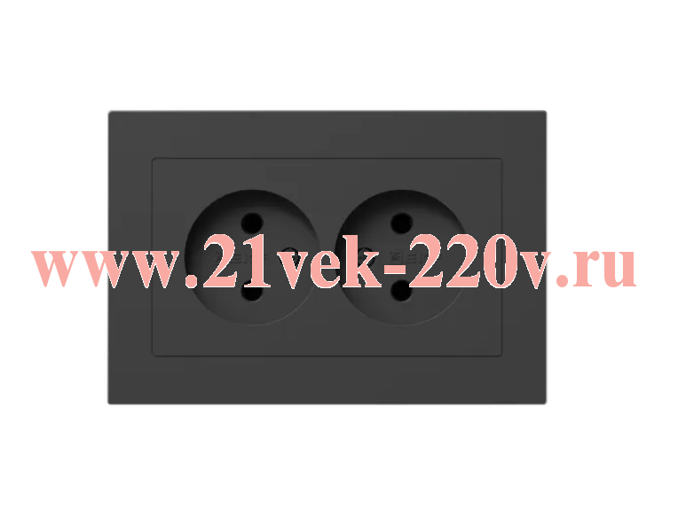 Розетка 2-м СП Эпика 16А без заземл. без защ. шторок с рамкой механизм черн. EKF UP1-SOB-200