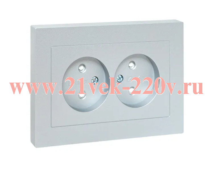 Розетка 2-м СП Эпика 16А без заземл. защ. шторки с рамкой механизм алюм. EKF