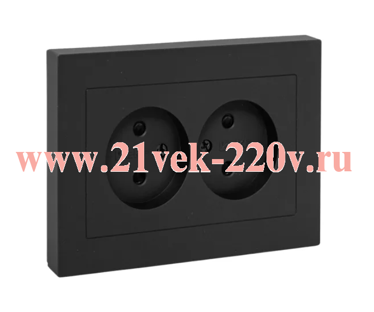 Розетка 2-м СП Эпика 16А без заземл. защ. шторки с рамкой механизм черн. EKF